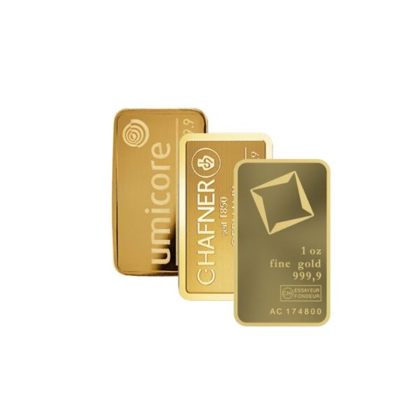 Koop nu een goudbaar aan van een LBMA erkende producent voor de allerscherpste prijs! U ontvangt een goudbaar van 1 troy ounce gram van .9999 (24 karaats) fijn goud van verschillende LBMA-gecertificeerde fabrikanten. Dit kan een goudbaar zijn van Umicore, Valcambi, C. Hafner, Argor-Heraeus of ieder ander LBMA-goudstaaf. Afhankelijk van de beschikbaarheid wordt bepaald van welke fabrikant u uw goudbaar ontvangt,. We behouden ons dit recht voor, maar u kunt er zeker van zijn dat alle goudstaven die we verkopen voldoen aan de Good Delivery-status van de LBMA en dus van de hoogste kwaliteit zijn.