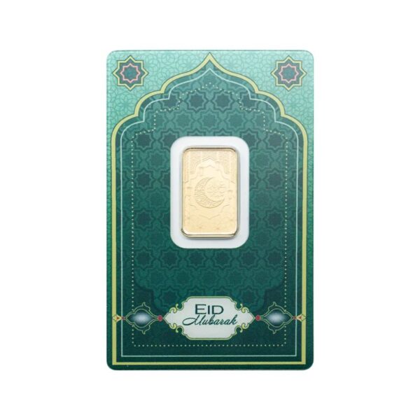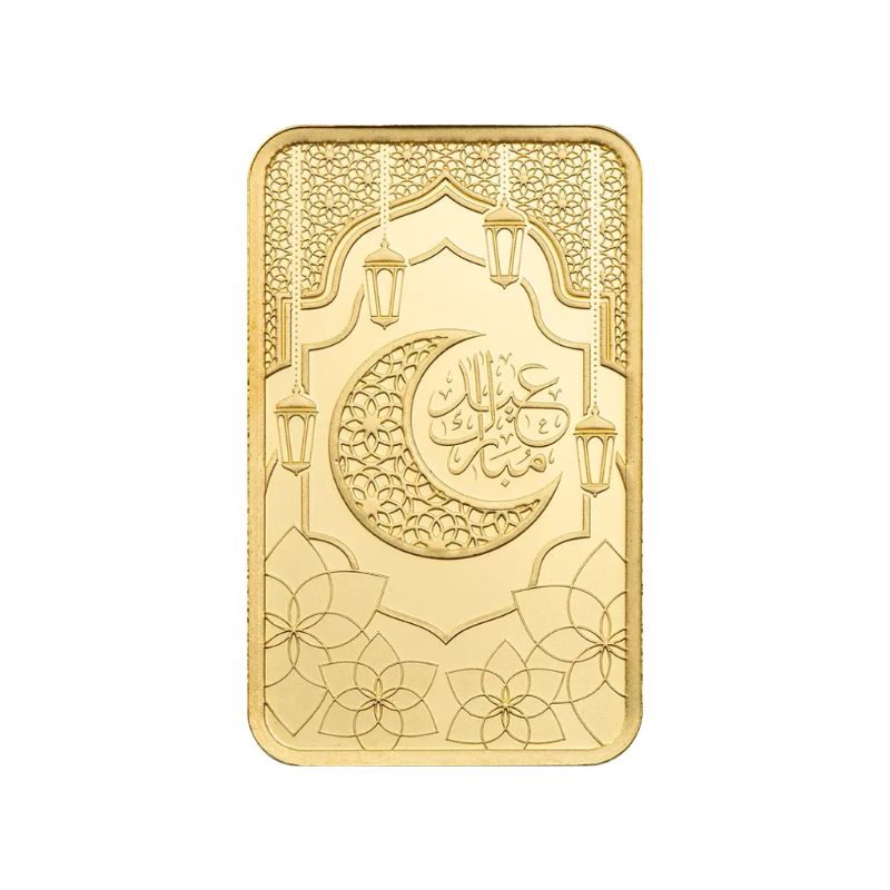 Vier de geest van dankbaarheid, vrijgevigheid en eenheid met deze prachtig vormgegeven 5 gram Eid al-Fitr goudstaaf, ingeslagen in .9999 (24 karaats) fijn goud en afgewerkt volgens een verbluffende proof-achtige standaard Eid al-Fitr (suikerfeest) markeert het einde van de Ramadan, de heilige maand van vasten en reflectie in de islam. Het wordt door moslims over de hele wereld waargenomen en is een tijd van gemeenschappelijke gebeden, feestelijke bijeenkomsten en liefdadigheidsgiften (Zakat al-Fitr), en oprechte viering met familie en vrienden. Deze goudstaaf eert die vreugdevolle gelegenheid met een betekenisvol en tijdloos eerbetoon in edelmetaalvorm. Geslagen in een gelimiteerde oplage van 6.000 stuks!