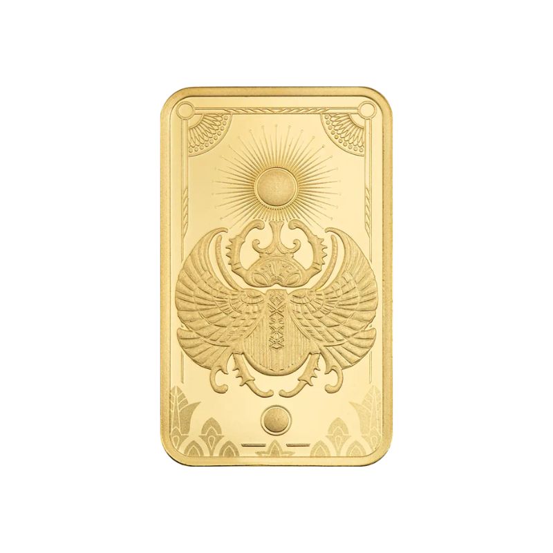 Stap in de legende van het oude Egypte en ontdek de magie van de Lucky Scarab 5 gram goudbaar– een gedurfde samensmelting van kunst, symboliek en investeringen. De iconische mestkever, een gerespecteerd embleem van wedergeboorte, transformatie en geluk, wordt opnieuw bedacht door de Zwitserse ontwerpers van PAMP Suisse voor moderne verzamelaars. Omdat er slechts een beperkt aantal exemplaren beschikbaar is, wordt elke goudbaar individueel genummerde en geleverd in een blisterverpakking premium, waardoor het een gewilde schat is voor zowel goudverzamelaars als degenen die op zoek zijn naar een bijzondere goudbaar. De Lucky Scarab van Pamp Suisse is uitgebracht in een gelimiteerde oplage van 6.000 stuks.