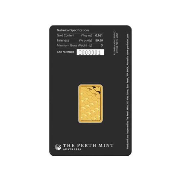 Deze goudbaar wordt geslagen door de wereldberoemde Perth Mint uit Australië. De goudbaren zijn onder andere te herkennen door het zwanenlogo van de Perth Mint aan de voorkant, en het kangaroo design achterop de baar. De goudbaar weegt 20 gram en bevat .9999 (24 karaats) puur goud. De goudbaar wordt geleverd in een blisterverpakking die tevens geldt als certificaat van echtheid. Elke goudbaar is ondergebracht in een verzegelde verpakking die het woord VOID rond de rand van de blister laat zien als de kaart is geopend. De blisterverpakking is houtskoolkleurig met een donker, watermerkachtig beeld van het gestileerde zwanenlogo van de munt.