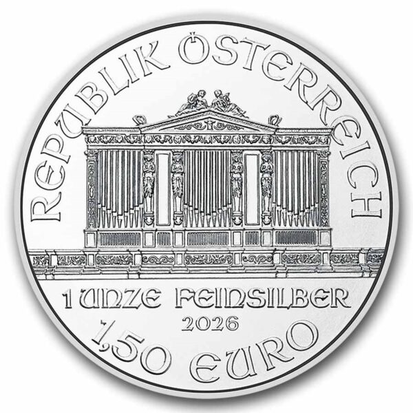 De nieuwste Philharmonic 1 troy ounce zilveren munt 2026 heeft het klassieke ontwerp van het Philharmonic behouden en blijft wereldwijd investeerders aantrekken vanwege zijn schoonheid en zuiverheid. De zilveren Philharmonic werd voor het eerst geïntroduceerd in 2008. Elke zilveren Philharmonic wordt geslagen met een zuiverheid van .999 en weegt 31,1304 gram. De zilveren Philharmoniker munt wordt per 20 stuks standaard geleverd in originele tube, en bij afname van 500 stuks standaard geleverd in originele Monsterbox.